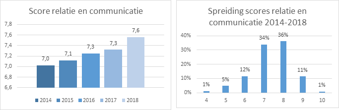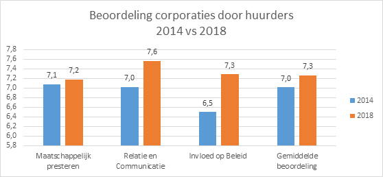 De relatie en communicatie met de corporatie is in de ogen van huurders duidelijk verbeterd. In 2014 was het huurdersoordeel gemiddeld een 7,0, sindsdien is dat gestegen tot een 7,6 in 2018. Bijna de helft (48%) van de corporaties krijgt van de huurders een 8 of hoger.