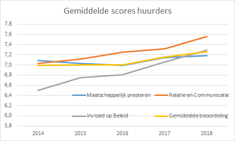 Een analyse van 355 visitatierapporten (2014 t/m 2018) laat zien dat huurders over het algemeen behoorlijk tevreden zijn over het functioneren van hun woningcorporatie. In 2014 waardeerden ze dat al met gemiddeld een 7,0, in 2018 is die waardering gestegen naar een 7,3.